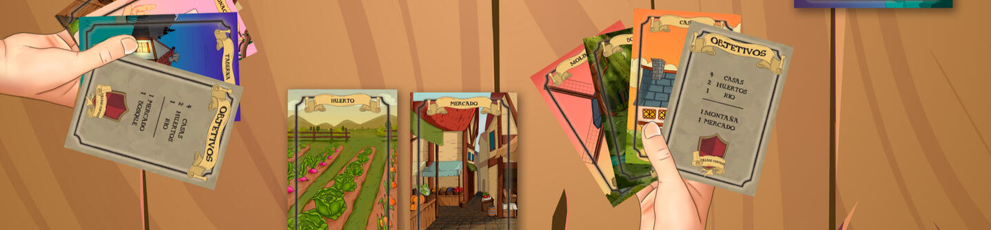 A fast card game where players race to be the first to complete the village shown on their secret Goal Card. Each Goal Card requiring a unique combination of elements, such as Houses, Crops, Markets, Mountains, and more.On your turn, you'll draw, play, and manage your cards to gradually develop your village or sabotage your opponents’.Village Contest combines light strategy with a hint of mischief and luck.